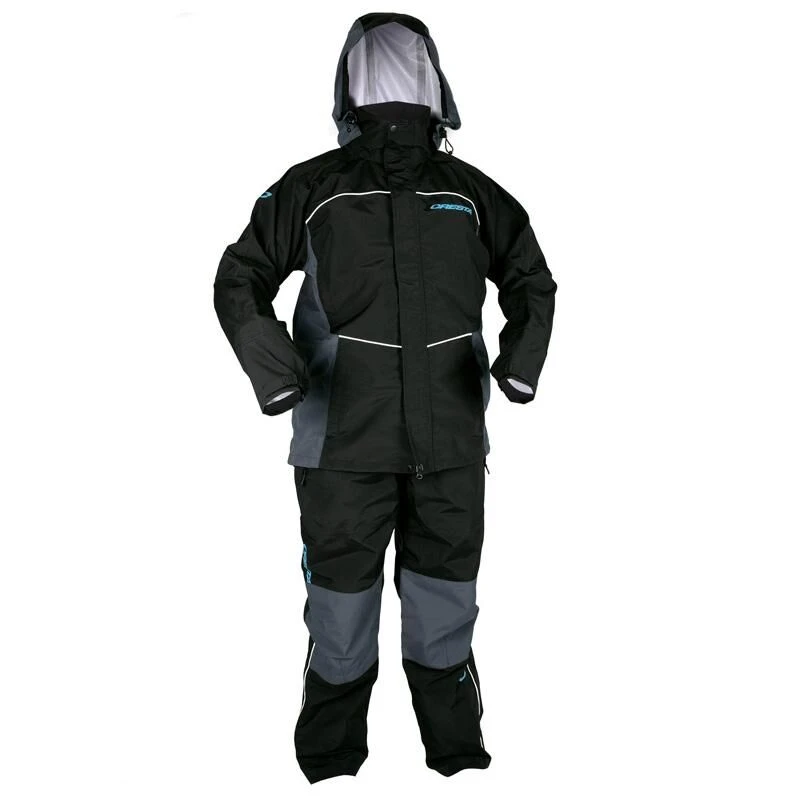 Het Cresta All Weather Suit is speciaal ontworpen voor de veeleisende visser die comfortabel en beschermd tegen de elementen het maximale uit zijn visdag wil halen. Het soepele 3-laags materiaal bezit een waterdichtheid van 10K, volledig gesealde naden en is 3K ademend uitgevoerd. De pasvorm is gemaakt om zowel staand als zittend goed te kunnen bewegen, terwijl neopreen sluitingen en sleeve straps zorgen voor een perfecte afsluiting van de mouwen. De afneembare capuchon is voorzien van verstelbaar elastisch koord en de jas is uitgerust met 4 afsluitbare zakken en taille strips. De hoge broek met schouderbanden zijn voorzien van 2 afsluitbare zakken, dubbele rits aan de voorzijde en een enkele rits aan beide pijpen. De verstevigde knie vlakken garanderen een lange levensduur. Het Cresta All Weather Suit kan in elk jaargetijde gedragen worden en is verkrijgbaar in de maten: M, L, XL, XXL en XXXL.