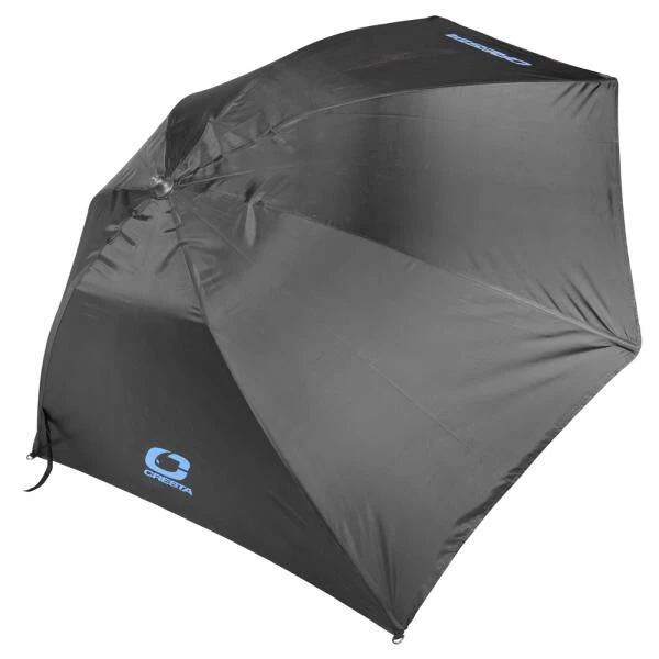 Deze robuuste paraplu is uitgevoerd met 7 glass-fiber baleinen en is voorzien van een afgevlakte zijde. De lengte van de stang is aangepast zodat de afgevlakte zijde altijd tegen de grond geplaatst kan worden. Door de meegeleverde T-pegs door de aangebrachte lussen in de grond te steken kan de paraplu extra gefixeerd worden. Natuurlijk kan de paraplu ook gewoon boven de visser geplaatst worden. Een zeer solide schroefkoppeling zorgt ervoor de steel op 45 graden gezet kan worden, zodat elke gewenste positie mogelijk is. De meegeleverde neopreen band zorgt ervoor dat de paraplu gemakkelijk en snel compact op te bergen is in de sleeve. Maximale hoogte: 185cm.