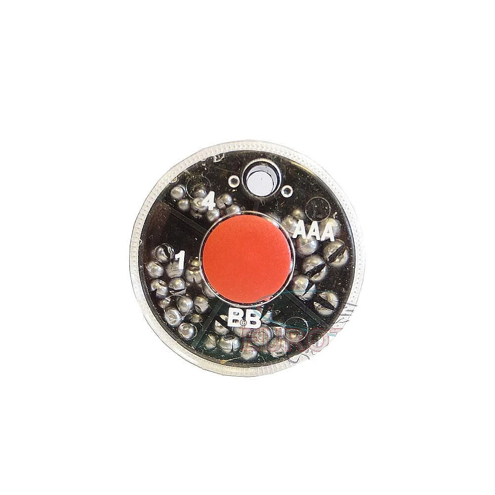 Handige dispenser met vier verschillende maten kwaliteits knijplood. Gevuld met 4 verschillende maten knijplood nr.1, nr.4, AAA en BB.