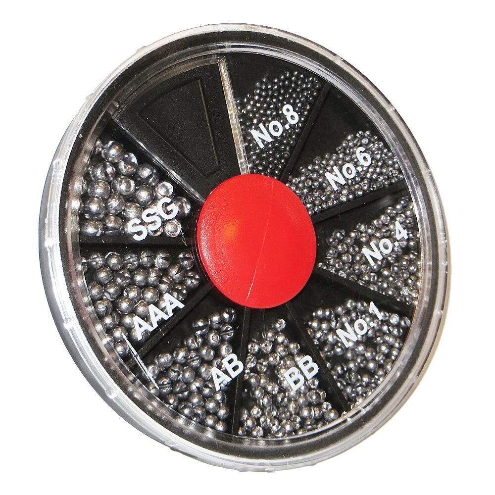Handige dispenser met acht verschillende maten kwaliteits knijplood. Dit is tevens het grootste model wat Dinsmore heeft. Gevuld met 8 verschillende maten knijplood nr.1, nr.4, nr.6, nr.8, AAA, BB, SSG en AB