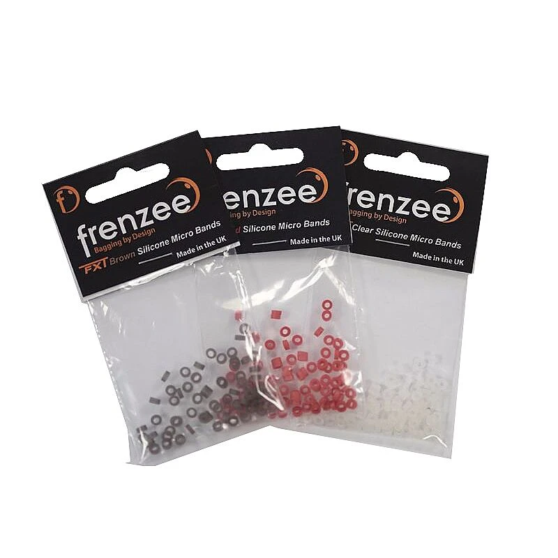 Een nieuw artikel binnen de Frenzee bait range zijn de bait bands. Deze bait bands van silecone moet men in het koffer hebben. Men kan ze gebruiken om allerlei soorten aas te bevestigen aan de haak. Zelfs de kleinste aassoorten maden, casters, pellets, enz alles van 2mm of meer iis met deze elastiekjes te bevestigen. De rek van deze elastiekjes is veel meer als bij andere soorten en zal men dus minder snel hoeven te vervangen. Dit spaart u tijd en kunt u zich meer bezighouden met het vangen van vis.