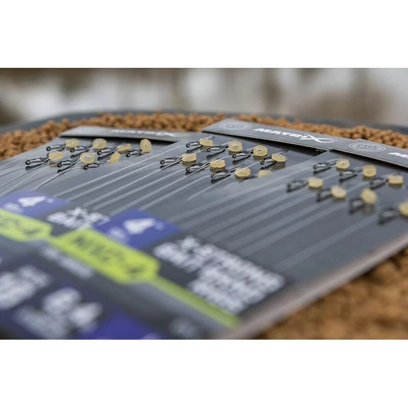 - Duurzame Matrix bait bands bevestigd met de lusmethode van Jamie Hughes.