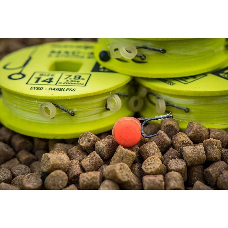 De Matrix MXC-4 onderlijnen zijn 45 cm lang. Deze kant en klare onderlijnen van Matrix zijn gemaakt met de bekende MXC-4 haken. Deze haken zijn voorzien van een PTFE coating en hebben een extra grote haakbocht voor een betere inhaking van de vis. De bait bands maken het mogelijk deze onderlijnen met pellets te vissen. De gebruikte nylon is extra sterk voor de grotere karpers.