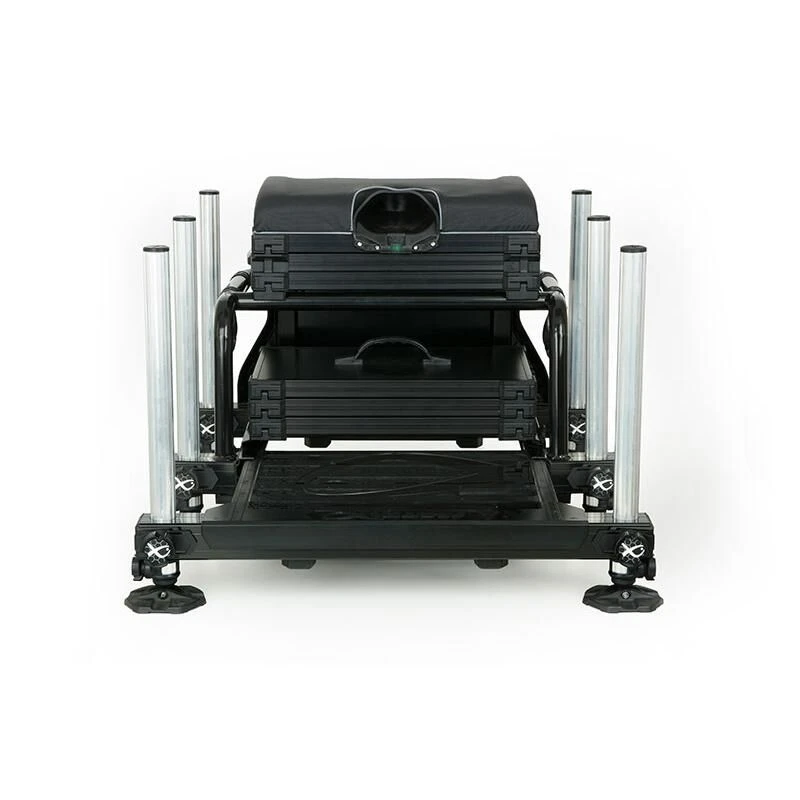 De Matrix S36 Superbox Black Edition is een zitkist met een lichtgewicht aluminium frame. De zitmand is opgebouwd met een zestal poten met een diameter van 36mm die volledig instelbaar zijn. Daarnaast zijn de poten ook voorzien van schroefdraden om zo gemakkelijk accessoires te kunnen bevestigen en/of de poten eventueel te verlengen. Deze kist heeft onder andere de volgende onderdelen/lades: 1x Deep Drawer Unit, 1x Single tray unit en 1x Transport Lid.