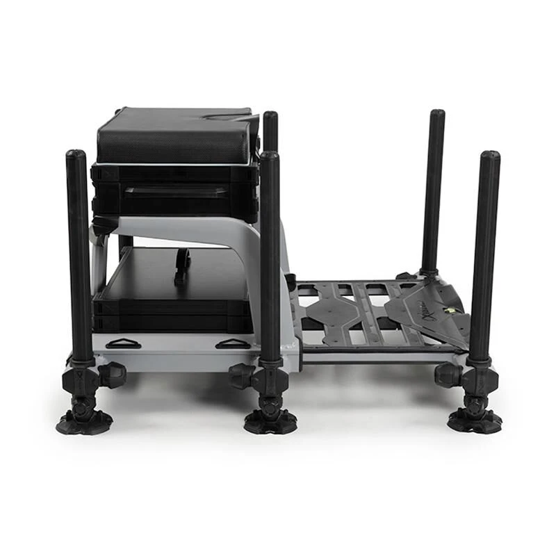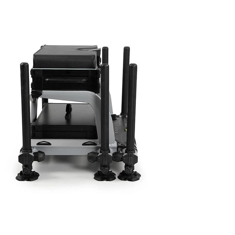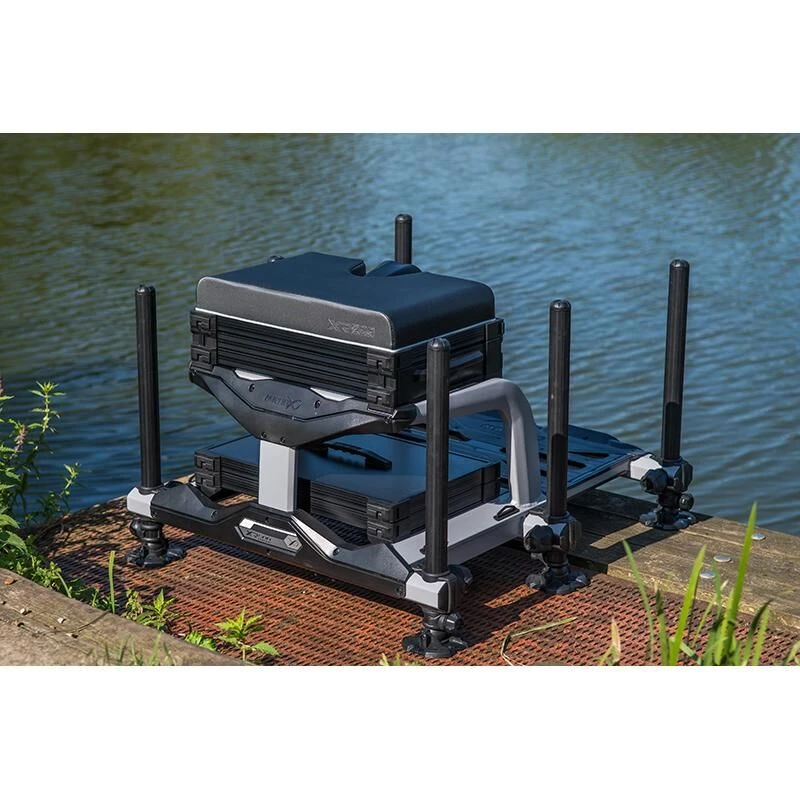 Een enorme complete zitkist voor de serieuze wit-/wedtsrijdvisser. De Matrix XR36 Pro 500 Edition Seatbox heeft alles wat je tijdens een sessie nodig kan hebben. Hij is voorzien van 6 stevige poten die in alle richtingen kunnen draaien, zodat je op iedere ondergrond grip hebt. Hij is tevens voorzien van een waterpas waardoor je altijd recht zit. De voetplaatcover is van een duurzaam gestructureerd kunststof gemaakt en is nagenoeg onverwoestbaar. De non-marking leg clamps zorgen ervoor dat je op elke hoogte en weersomstandigheid stevig en veilig zit te vissen. Het zitkussen is gemaakt van een ultra-duurzaam PU materiaal, wat jaren meegaat en zijn vorm niet verliest. De kist heeft een ingebouwde Deep side drawer met insert trays en ook een Shallow tray unit. De transportdeksel is voorzien van een sterke kunststof handgreep waarmee je hem makkelijk kan vervoeren. Het geheel weegt 18,5kg en is erg compact mee te nemen. Tot slot wordt de Matrix XR36 Pro 500 Edition Seatbox geleverd met een bijbehorende cover, zodat je hem altijd netjes en schoon kan opruimen!