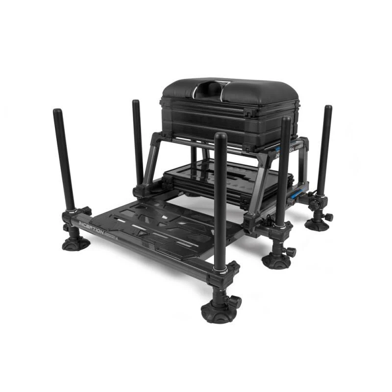 De Inception heeft de Inception SL30 als basis, met enkele belangrijke verbeteringen, terwijl de populaire opbouw met diepe zijladen en een diepe opslagruimte onderop behouden blijft. De handwielen zijn verbeterd en hebben nu een soft touch coating, wat ze gemakkelijker te hanteren maakt in koude en natte weersomstandigheden. Wordt nu geleverd met vier telescopische poten, waarmee de viskist meer geschikt is voor ongelijk terrein en voor het wadend vissen. De voetenplaat wordt nu op zijn plaats gehouden door twee uittrekbare pennen, waardoor het geheel sneller op te zetten is en de voetenplaat telkens perfect op zijn plek blijft zitten. Elke unit wordt geleverd met de revolutionaire Mag-Lok clips, deze garanderen dat de units secuur bij elkaar gehouden worden maar ook in een seconde geopend kunnen worden, waarmee je toegang hebt tot het onderste opslagcompartiment.Â