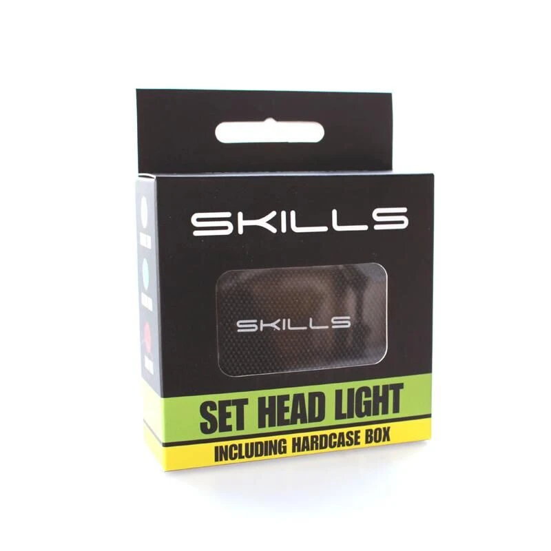 Deze headlight van Skills is een super lichtgewicht hoofdlamp. Lamp heeft 3 kleuren licht: Wit, groen en rood. De Cree XPG3 led heeft een max uitgang van 365 lumen met een maximale afstand van 85 meter. De lamp heeft 6 helderheid niveaus en 4 opties te selecteren. Voorzien van een ingebouwde 700mah Li-on Polymer batterij, die bij de zuinigste stand een duur heeft van 200 uur. Bij een lage accu knippert er rood licht.