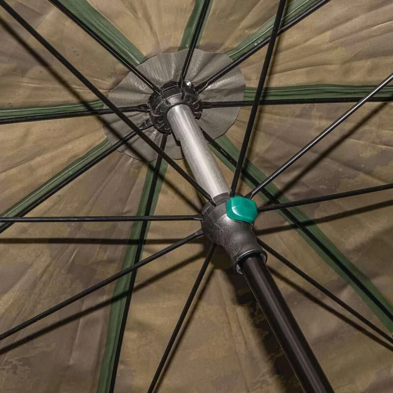 60” brolly in het door Solar gevoerde populaire UnderCover Camo-patroon. Het kan worden gebruikt met de middenstok op zijn plaats, of de middenstok kan worden verplaatst om parallel te lopen met de achterkant van de brolly. Met 2 storm-paalbevestigingen zodat de brolly indien nodig met 2 stormstokken kan worden gebruikt.