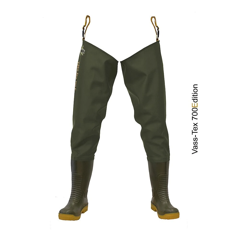De hoogste kwaliteit PVC lieslaarzen. Vass-Tex lieslaarzen zijn extreem sterk, gemaakt van Vass-Tex 700 PVC aan de buitenzijde en aan de binnenzijde een zachte polyester stretch materiaal wat ervoor zorgt dat de lieslaars een super pas comfort biedt. De Lieslaars wordt gemaakt tezamen met de extreem robuuste Vass Boot die nu nog een beter pascomfort heeft door middel van de verbreedde zool. Een lieslaars wat een perfecte prijs kwaliteitverhouding heeft.